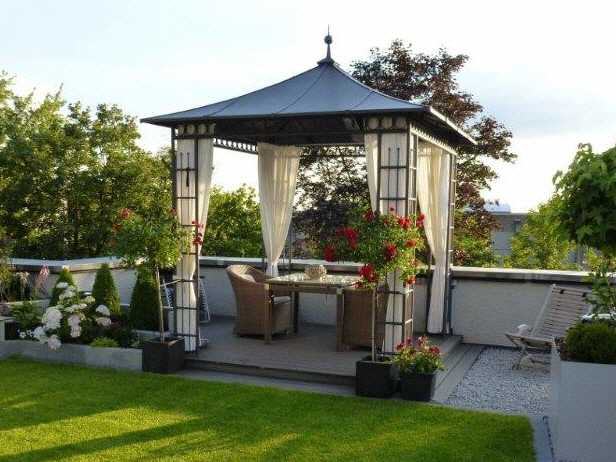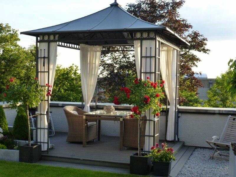 Der Metallpavillon Castel ist in den Grundmassen 250 x 250 - 300 x 300 - 350 x 350 - 400 x 400 und auch in Sondermaßen lieferbar. Die Höhe des Metallpavillon ist ca. 350 cm