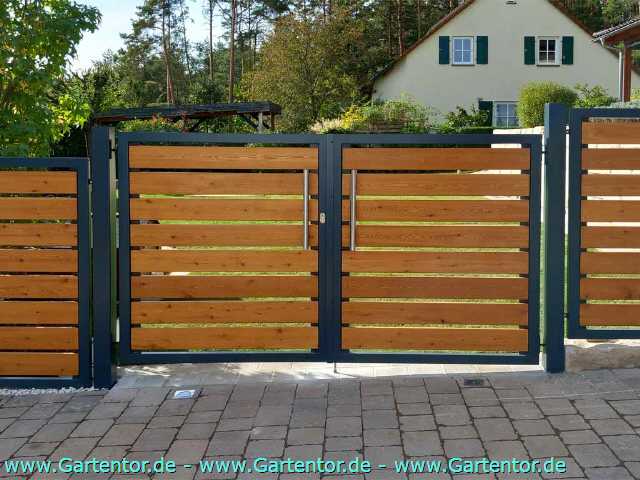 - Dieses Gartentor ist 1 + 2-flügelig lieferbar